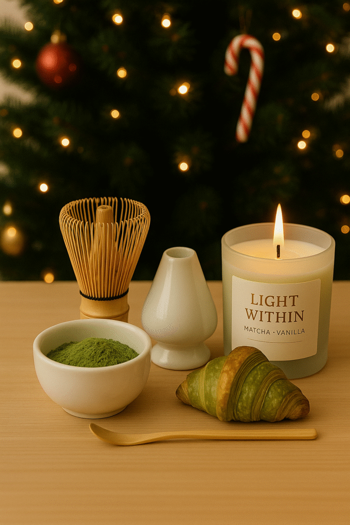 Lite yoga with festive aromatherapy and sound bath therapy. Enjoy a custom ceremonial matcha holiday flavored latte, holiday‑inspired baked goods, and make your own Christmas scented candle + mini matcha set — with customizable tins to keep or gift.